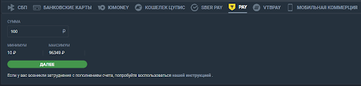 Для каждого способа оплаты указаны минимальная сумма одного платежа и максимальная сумма одного платежа. Лимиты устанавливаются в зависимости от уровня идентификации игрока, а также ЕЦУПИС.